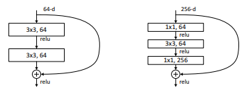 이 논문은 계산 시간과 복잡도의 개선을 위해 bottleneck 구조를 제안한다. 이는 기존에 하나의 building block에서 2개의 합성곱 층을 사용한 것과 다르게 1x1, 3x3, 1x1 순서로 3개의 합성곱 층을 사용한다.
